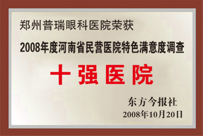 同时,医院在医疗服务上真正做到了“患者度优先、医院服务质量”,先后荣获“08年度河南省民营医院特色度调查十强医院”、“中原名医名院”等殊荣 ,在网络、报媒、电视台评选中, 被评为“3.15年度*企业”。